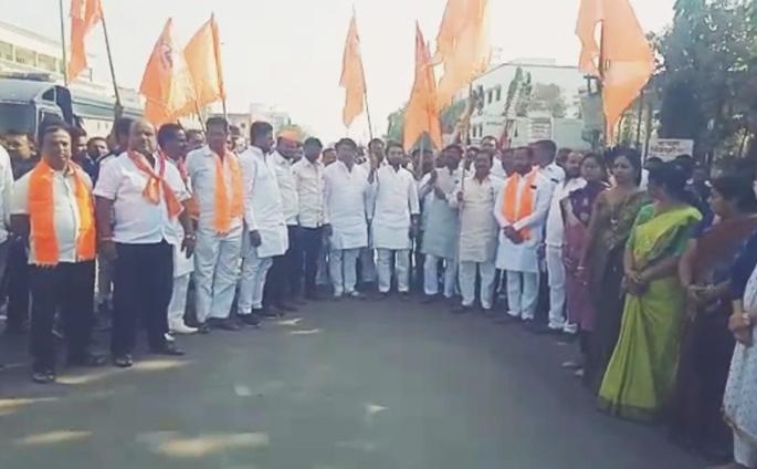 शिवरायांबद्दल वादग्रस्त वक्तव्य केल्याबद्दल सोलापुरातील शिवसैनिकांनी राज्यपालांच्या सोलापुरातील कार्यक्रमाला विरोध दर्शविला होता. त्यामुळे पोलिसांनी मोठा बंदोबस्त ठेवला होता. आसरा चौकात राज्यपालांच्या विरोधात जोरदार घोषणाबाजी करीत राज्यपालांचा निषेध केला. यावेळी शिवसैनिकांनी जोरदार घोषणाबाजी केली.
