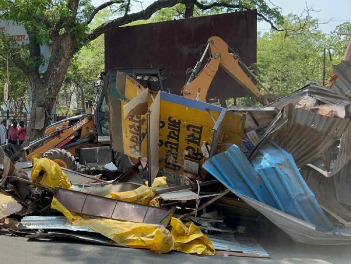 जिल्हा परिषदेच्या समोरील खोक्यांवर फिरला महापालिकेचा जेसीबी!