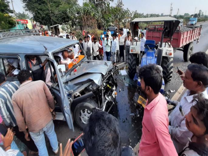 मंद्रुप (ता़ द़ सोलापूर) येथील खाडे कुटुंबिय लग्न कार्यासाठी गुलबर्ग्याला जात होते़ सकाळी नऊच्या सुमारास उमरगा शहरापासून थोड्याच अंतरावर असलेल्या जत्तीपूर गावाजवळ ऊस वाहतुक करणारा ट्रॅक्टर जात होता. यावेळी जीप चालकाचे संतुलन बिघडल्याने ट्रॅक्टरला पाठीमागून धडक दिली. या धडकेत एक जण जागीच ठार झाले असून अन्य तिघेजण गंभीर जखमी झाल्याची घटना घडली आहे़ या घटनेनंतर कर्नाटक पोलीसांनी घटनास्थळी धाव घेतली असून जखमींना उपचारासाठी रूग्णालयात हलविण्यात आले आहे.