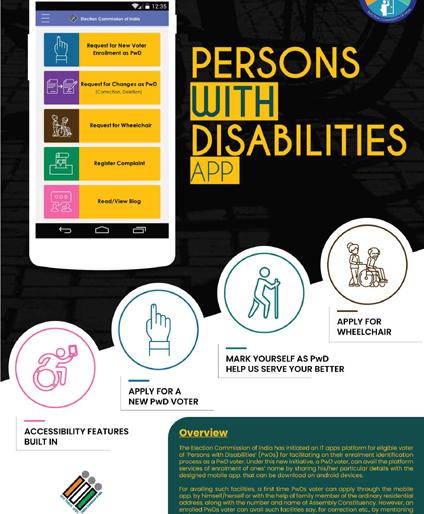 दिव्यांगांसाठी काम करणा?्या स्वयंसेवी संस्था तसेच अपंग कल्याण आयुक्तालय यांचीही या कामी मदत घेण्यात येत आहे. त्यांच्या सहाय्याने यंदा दिव्यांग मतदारांची विशेष नोंदणी मोहीम राबविण्यात आली. अपंगांना मतदान केंद्रांवर आवश्यक सुविधा पुरविण्यात याव्यात, असे निर्देश निवडणूक आयोगामार्फत सर्व जिल्हाधिका?्यांना देण्यात आले आहेत. या सर्व सुविधांबाबत निवडणुकीशी संबंधित अधिका?्यांना विविध प्रशिक्षणांमध्ये अवगत करण्यात आले आहे. दिव्यांगांना सुविधा देण्यासाठी जिल्हास्तर तसेच राज्यस्तरावर सुकाणू समित्या स्थापन करण्यात आल्या आहेत.
