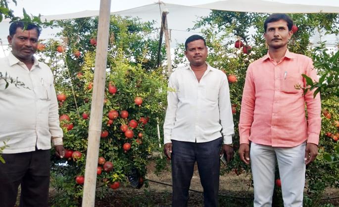 संतोष व दत्तात्रय या बंधूंनी तीन वर्षांपूर्वी भगव्या जातीच्या डाळिंब रोपांची निवड केली़ दोन एकर क्षेत्रामध्ये त्याची लागवड केली़ तत्पूर्वी त्यांनी जमिनीची नांगरट करून त्यात कुळवणी करून जमीन भुसभुशीत केली़ नंतर १२ बाय ८ अशा अंतरावर खड्डे खोदून भगवा जातीच्या डाळिंबाची रोपे लावली़ लागवड करताना त्यामध्ये लिंबोळी पेंड टाकून १०५० रोपांची लागवड केली़ पावसाचे प्रमाणही कमी आणि विहिरीला पाणी कमी असल्याने एक बोअर घेतला. त्याला पुरेसे पाणी लागले़ शिवाय विहिरीतील पाणी याचे काटेकोरपणे नियोजन केले़ ठिबक सिंचनद्वारे बागेला पाणी दिले.