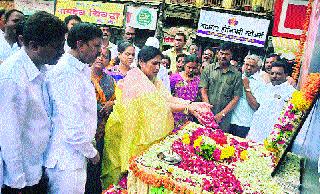 सोलापूर : ‘अमर रहे अमर रहे गोपीनाथ मुंडे अमर रहे’ अशा घोषणा देत भाजप नेते गोपीनाथ मुंडे यांच्या अस्थिकलशाचे रविवारी सोलापुरातील असंख्य चाहत्यांनी व कार्यकर्त्यांनी दर्शन घेतले़ सोलापुरातून दुपारी हा अस्थिकलश मोहोळमार्गे पंढरपुरात नेण्यात आला आणि सायंकाळी साडेपाच वाजता चंद्रभागा नदीत या अस्थिकलशाचे विसर्जन करण्यात आले़ भाजप नेते गोपीनाथ मुंडे यांचा अस्थिकलश रविवारी सकाळी सिध्देश्वर एक्स्प्रेसने आ़ विजयकुमार देशमुख, अशोक निंबर्गी, अशोक कटके, संजय कोळी, राजू पाटील यांनी आणला़ त्यानंतर हा अस्थिकलश नवीपेठेतील आमदार विजयकुमार देशमुख यांच्या संपर्क कार्यालयासमोर दर्शनासाठी दुपारी अडीचपर्यंत ठेवण्यात आला होता़ महापौर अलका राठोड, आ़ दिलीप माने, आ़ सिद्रामप्पा पाटील, माजी आमदार भाई एस़एम़ पाटील, माजी आमदार नरसिंग मेंगजी, शिवसेनेचे शहरप्रमुख प्रताप चव्हाण, सहसंपर्कप्रमुख पुरुषोत्तम बरडे, विष्णू कारमपुरी आदींनी अस्थिकलशाचे दर्शन घेतले़अस्थिकलशाच्या दर्शनासाठी पिंटू महाले, चन्नवीर चिट्टे, विक्रम देशमुख, प्रशांत फत्तेपूरकर, अमर पुदाले, संजय वाघमारे, संजय क्षीरसागर, बाबूराव घुगे, काशिनाथ थिटे, बाबा बडवे आदी उपस्थित होते़ दुपारी अडीच वाजता हा अस्थिकलश मोहोळला नेण्यात आला़ तेथे अर्धा तास दर्शनासाठी ठेवण्यात आला होता़ त्यानंतर पंढरपुरात नेऊन सायंकाळी साडेपाच वाजता अस्थिकलशाचे आ़ विजयकुमार देशमुख यांच्यासह अनेक चाहत्यांच्या उपस्थितीत विसर्जन करण्यात आले़ धर्मपुरीत दुसरा अस्थिकलशभाजप नेते गोपीनाथ मुंडे यांचा दुसरा अस्थिकलश मुंबईहून माजी खासदार सुभाष देशमुख यांनी धर्मपुरी येथे रविवारी सकाळी आणला होता़ त्यावेळी त्यांच्या समवेत राजकुमार पाटील, शहाजी पवार , सचिन कल्याणशेट्टी, संजय कोकाटे आदी उपस्थित होते़ धर्मपुरी, नातेपुते, सदाशिवनगर, माळशिरस, वेळापूर आदी ठिकाणी हा अस्थिकलश दर्शनासाठी ठेवला़ दुपारी अडीच वाजता तो पंढरपुरात आणला़ चौपाडमध्ये दर्शनासाठी ठेवण्यात आला़ यावेळी प्रशांत परिचारक यांच्यासह महायुती व विविध पक्षांच्या नेत्यांनी दर्शन घेऊन मुंडे यांना श्रध्दांजली वाहिली़ शेकडो कार्यकर्त्यांनी मुंडे यांच्या अस्थिकलशाचे दर्शन घेऊन श्रध्दांजली वाहिली़ तेथून रथामध्ये अस्थिकलशाची मिरवणूक काढून चंद्रभागेत अस्थींचे विसर्जन केले़ यावेळी भाजप कार्यकर्त्यांनी मुंडे साहेब अमर रहेच्या घोषणा दिल्या़ ---------------------------------------------------भाजपामध्ये अशीही दुफळी....मुंडे हयात असल्यापासून ते त्यांचे निधन झाल्यापर्यंत आणि त्यांना श्रध्दांजली वाहण्यापासून ते अस्थींचे विसर्जन करण्यापर्यंत प्रत्येक ठिकाणी भाजपमधील गटबाजी दिसून आली़ श्रध्दा