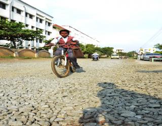 सोलापूर : ओ काका... डांबरी नव्हे, खडीच्या रस्त्यामुळे उडणाºया धुळीतून गाठतोय शाळा बरं का...!