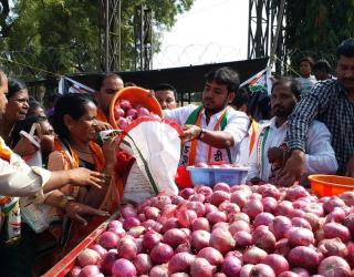 भाजप सरकारच्या विरोधात राष्ट्रवादीचे आंदोलन; दोन टन कांद्याचे मोफत वाटप
