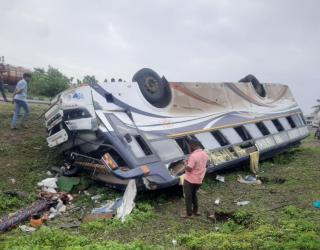 सोलापूर-पुणे महामार्गावर ट्रॅव्हल्स बसचा अपघात; पुणे अन् मराठवाड्यातील ३० प्रवासी गंभीर जखमी