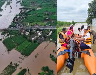 सोलापूर : सोलापूर महापूर, २९ गावं पुराच्या पाण्यात अडकलेली; भारतीय सैन्य व एनडीआरएफचे पथकाकडून बचावकार्य