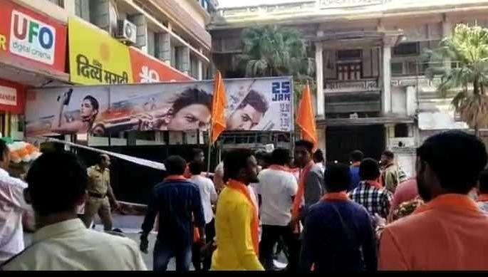 शुक्रवारी सकाळच्या शो च्या सुमारास भगवे ध्वज व बॅनर घेऊन आलेल्या हिंदू राष्ट्र सेनेचे कार्यकर्ते यांनी वंदे मातरम, भारत माता की जय अशा विविध घोषणा देण्यास सुरूवात केली.