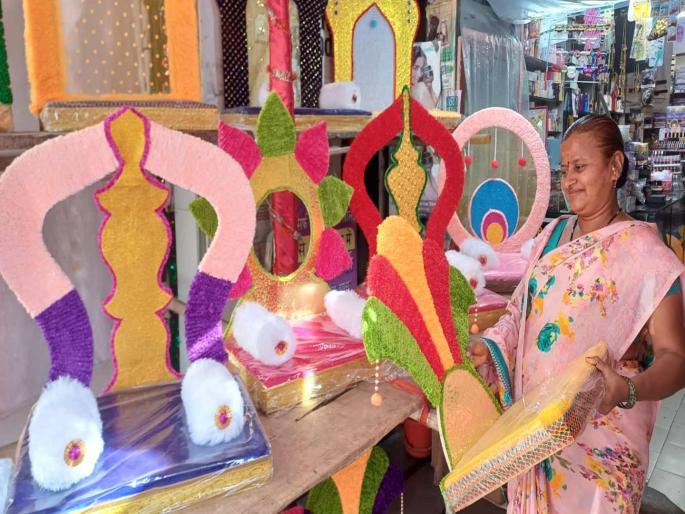 सोलापूर : गौरी-गणपतीच्या आगमनाचे. गौरी-गणपतीच्या सजावटीसाठी लागणारे रेडिमेड मखर बाजारात दाखल झाले असून, आकर्षक मखर खरेदी करण्याकडे ग्राहकांचा कल वाढला आहे. बालगोपाळांपासून सर्वांचा आवडता सण म्हणजे गौरी-गणपतींचे आगमन. काही दिवसांवर आलेल्या गणेशोत्सवाची जय्यत तयारी सोलापुरात सुरू आहे. आपल्या लाडक्या बाप्पाच्या स्वागतासाठी बाजारपेठा सजल्या आहेत. यंदाच्या गणेशोत्सवासाठी सोलापुरातील मधला मारुती, टिळक चौक येथे आकर्षक मखर उपलब्ध असून ते खरेदी करण्यासाठी नागरिकांनी देखील गर्दी केलेली पाहायला मिळत आहे.