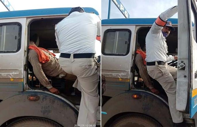 याबाबत सविस्तर माहिती अशी की, सोलापूर-पुणे महामार्गावरील पाकणी येथील महामार्ग पोलिस मदत केंद्राजवळ पोलीस नाईक संजय विठोबा चौगुले (बक्कल नंबर २२५) हे सेवा बजावित होते़ यावेळी पुण्याहून सोलापूरच्या दिशेने येणाऱ्या ट्रक वेडावाकडा येत असल्याचे चौगुले यांच्या निर्दशनास आला़ त्यानंतर चौगुले यांनी त्या ट्रकचालकाला हात दाखवित थांबविण्याचा इशारा केला, परंतू ट्रकचालक हा सीटवर पडलेला दिसला़ त्यानंतर पोलिस नाईक चौगुले यांनी मोठया शिताफीने गॅस टँकरवर चढून चालकाच्या साईडचा दरवाजा उघडून ब्रेक मारून गॅस टँकर थांबविला.