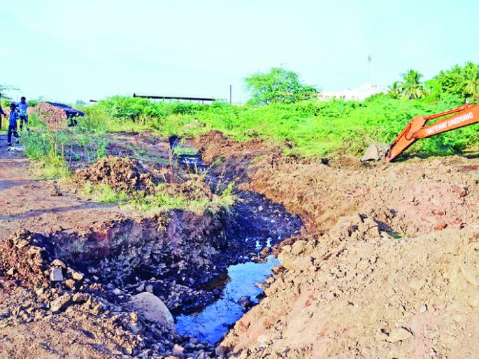 खाणीतून पाणी जाण्यासाठी चर खोदली