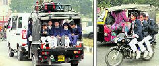 आॅनलाइन लोकमत सोलापूरसोलापूर दि २४ : आरटीओ व पोलिसांच्या संयुक्त पथकाने सलग तिसऱ्या दिवशी केलेल्या स्कूलबस तपासणीत अनेक धक्कादायक गोष्टी आढळल्या. अक्कलकोट येथे ७, बार्शीत ५ तर सोलापुरात १६ वाहनांवर कारवाई करण्यात आली. शालेय विद्यार्थ्यांच्या धोकादायक वाहतुकीकडे ‘लोकमत’ने लक्ष वेधले होते. या वृत्ताची दखल पोलीस आयुक्त महादेव तांबडे, पोलीस अधीक्षक वीरेश प्रभू आणि उपप्रादेशिक परिवहन अधिकारी बजरंग खरमाटे यांनी घेतली. सलग तिसऱ्या दिवशी म्हणजे शुक्रवारी सकाळी सोलापूर शहर, अक्कलकोट आणि बार्शीत राबविलेल्या स्कूलबस तपासणीत २८ वाहने जप्त करण्यात आली. यात क्षमतेपेक्षा कितीतरी पटीने जास्त विद्यार्थी वाहतूक, फिटनेस प्रमाणपत्र, स्पीड गर्व्हनर, विद्यार्थी वाहतूक परवाना नसलेली वाहने जादा आढळली. यात पालकांकडून फी घेऊन चालविण्यात येणाऱ्या इंग्रजी शाळांची ही वाहने आहेत. धक्कादायक बाब म्हणजे शासनाच्या आदेशानुसार प्रत्येक शाळेत शालेय विद्यार्थी सुरक्षा वाहतूक समितीची स्थापना झालेली असताना ही स्थिती आहे. शालेय सुरक्षा समितीची जबाबदारी मुख्याध्यापकांवर असताना त्यांनी या गंभीर बाबींकडे दुर्लक्ष केल्याचे दिसून येत आहे. सोलापुरात मोटार वाहन निरीक्षक नंदकुमार काळे, संजय उदावंत, अनुपमा पुजारी, मारुती हजारे, विजय लोखंडे, सौरभ सोयगावकर यांच्या पथकाने विविध भागातील शाळांसमोर अचानकपणे जाऊन वाहनांची तपासणी केली. यात रिक्षा, मॅजीक, मारुती व्हॅन आणि बसमधून क्षमतेपेक्षा जादा वाहतूक करणारी १६ वाहने जप्त करण्यात आली. सेंट थॉमस स्कूलच्या बसची क्षमता २८ असताना ८७ विद्यार्थी आढळले. आरटीओच्या पथकाने ही बस जप्त केली. आसन व्यवस्थेत बदल करून क्षमतेपेक्षा जादा विद्यार्थी वाहतूक करणारी वाहने ताब्यात घेण्यात आली. ----------------------अक्कलकोटमध्ये गॅसबॉम्बवर विद्यार्थीअक्कलकोट शहरात सहायक मोटार वाहन निरीक्षक शफी उचगावकर, संतोष डुकरे, अभय साळुंके, शीतल कुंभार यांच्या दोन पथकाने अचानकपणे तपासणी केली. एमएच १३/बीएन ६१७0 या क्रमांकाच्या क्रुझर जीपमध्ये २४ विद्यार्थी आढळले. ही बस लायन्स जीप स्कूलकडे निघाली होती. बसस्थानकाजवळील तपासणीत या जीपवर कारवाई करण्यात आली. लीड स्कूलकडे निघालेली एमएच ३१/ सीएन ६७९४ या क्रमांकाची मारुती ओमनी कार पकडण्यात आली. कारमध्ये सात मुले होती पण सीटखाली घरगुती वापराचे एलपीजी गॅस सिलिंडर आडवे ठेवले होते. एलपीजी सिलिंडर चालू स्थितीत आडवे ठेवणे धोकादायक असते. अशा घरगुती गॅस सिलिंडरवर ही कार चालविण्यात येत होती. ---------------------बार्शीतील रिक्षात होती १७ मुलेबार्शी येथे श्रीनिवास मूर्ती, कळमणकर यांच्या पथकाने स्कूलबस तपासणी मोहीम राबविली. आरटीओच्या पथकाला पा