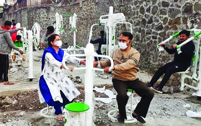 कोरोनाचे संकट आणि लॉकडाऊनमुळे थांबलेले काम मागील महिन्यापासून युद्धपातळीवर सुरू आहे. खुल्या जिमच्या साहित्यांची बांधणी करण्यात आली आहे. त्यासोबतच लहान मुलांसाठी सीसॉ, घसरगुंडी, चक्र हे सुद्धा ठेवण्यात आले आहेत. गुरुवारी सकाळी फिरायला आलेल्या मुलांचे लक्ष या खेळण्याकडे गेले अन् ते त्यामध्ये रमले. त्यांच्यासोबत आलेल्या पालकांनी जिमच्या साहित्यांची चाचपणी करीत सराव सुरू केला. एकेक करीत सर्वच फिरायला येणाऱ्या नागरिकांनी येथे व्यायाम करण्यास सुरुवात केली.