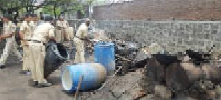 आॅनलाइन लोकमत सोलापूरसोलापूर दि ७ : दक्षिण सोलापूर तालुक्यातील मुळेगांव तांडा येथील अवैध दारू भट्टीवर सोलापूर तालुका पोलीसांनी कारवाई केली़ या कारवाईत ८ लाख २७ हजार ४०० रूपयांचे रसायन नष्ट केले़ याप्रकरणी दोघांविरूध्द तालुका पोलीसांनी गुन्हे दाखल केले आहेत़पोलीस महासंचालक यांनी रमजान ईदच्या अनुषंगाने अवैध धंद्यावर कारवाई करण्याचे आदेश दिले होते़ त्यानुसार सोलापूर तालुका पोलीसांनी मुळेगांव तांडा येथे चोरून चालणाऱ्या दोन अवैध दारू भट्टीवर छापे मारले़ यात १९७ बॅरेलमधील ३९ हजार ४०० लिटर हातभट्टी दारू तयार करण्याचे रसायन नष्ट केले़ याप्रकरणी किसन नामदेव राठोड व भारत बाळू राठोड या दोघांना ताब्यात घेऊन गुन्हे दाखल करण्यात आले आहे़ ही कारवाई पोलीस अधिक्षक विरेश प्रभू, अप्पर पोलीस अधिक्षक मिलिंद मोहिते, उपविभागीय पोलीस अधिकारी अभय डोंगरे यांच्या मार्गदर्शनाखाली सोलापूर तालुका पोलीस ठाण्याचे पोलीस निरीक्षक किशोर नावंदे, सपोनि कोळी, पोहेकॉ गायकवाड, चवरे, फुलारी, गवळी, पवार, चव्हाण, पोना माळी, व्होनमाने, कोरे, पवार, मपोना कोकणे, पोकॉ फडतरे, नेमाजी शेख, मोटे, भिंताडे, चासपोफौ पवार तसेच पोलीस मुख्यालयाकडील स्टायकिंग फोर्स व पोलीस कर्मचारी यांनी पार पाडली़