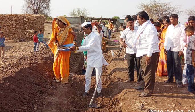 - च् या दोन्ही नवविवाहित जोडप्यांनी गाव पाणीदार करण्यासोबच काटकसरीने पाणी वापर करून गाव स्वयंपूर्ण करण्याचा संकल्प केला आहे.