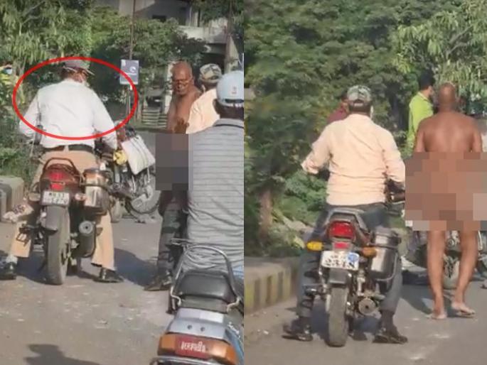 शहरातील गॅस गोडावूनमधून संबंधित व्यक्ती गॅस सिलेंडर घेऊन घराकडे जात होती. त्यावेळी, वाहतूक पोलिसाने दुचाकीस्वारास हटकले व मास्क नसल्याचे सांगत पैशांची मागणी केली. त्यावेळी, मास्क घालेन नाहीतर कपडे काढून फिरेन तुम्हाला काय करायचंय, असा प्रतिप्रश्न व्यक्तीने केला. त्यावेळी, पोलिसानेही कपडे काढा नाहीतर काहीही करा, पण मास्क नसेल तर पावती फाडा, अशी भूमिका घेतली होती. त्यानंतर, संबंधित व्यक्ती कपडे काढून नग्नावस्थेत रस्त्यावर उभा राहिला. या घटनेचा व्हिडिओ सोशल मीडियावर व्हायरल झाला आहे.