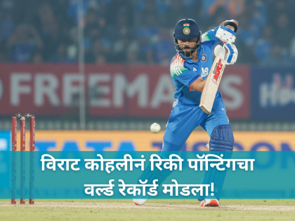 Virat Kohli Breaks Ricky Ponting Record: इंदूरच्या मैदानात विराट कोहलीने पुन्हा एकदा सिद्ध केले की त्याला 'किंग' का म्हणतात. न्यूझीलंडविरुद्धच्या तिसऱ्या एकदिवसीय सामन्यात विराटने १२४ धावांची धडाकेबाज खेळी करत क्रिकेट विश्वातील एका मोठ्या विक्रमाला ग ...