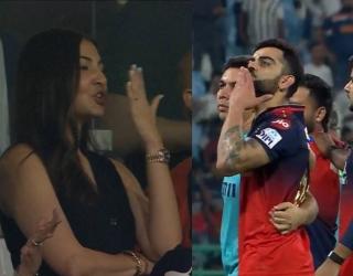 RCB ने सामना जिंकताच कोहलीने सर्वांसमोर केलं फ्लाइंग किस, अनुष्काने खास अंदाजात दिला रिप्लाय