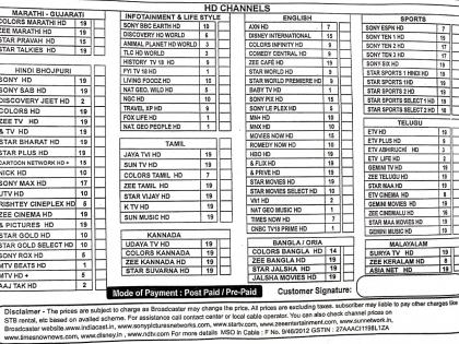 केबल चालकांनी ग्राहकांना एफटीएमध्ये 100 चॅनेलची यादी दिली आहे. तसेच पसंतीच्या चॅनेल निवडीसाठी फॉर्म दिला आहे. खाली दिलेला फॉर्म हा मुंबई, ठाणे, नवी मुंबईमध्ये केबल सेवा देणाऱ्या पुरवठादाराचा आहे. यामध्ये मराठीच्या 9 चॅनेलसाठी 80 रुपये आणि 18 टक्के जीएसटी मोजावा लागणार आहे. यामध्ये हिंदी, स्पोर्टस्, किड्स आणि म्युझिकचा कोणताही चॅनेल घेतलेला नाही.