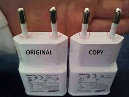 सॅमसंगच्या ओरिजनल आणि डुप्लिकेट चार्जरमधील फरक फारच छोटा असतो. जसे की, चार्जरच्या प्रिंटेड मॅटरमध्ये 'A+' आणि 'मेड इन चाइना' लिहिले असेत तर ते चार्जर डुप्लिकेट असतं. सोबतच ओरिजनल चार्जरच्या पिनचा बेस(पांढरा भाग) खाली जाड आणि वर बारीक असतो. डुप्लिकेट चार्जरमध्ये हा भाग एकसमान असतो.