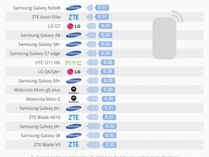 महत्वाचे म्हणजे काही वर्षांपूर्वी नोकियाला नेस्तनाभूत करून भारतीय बाजारपेठ काबीज करणाऱ्या सॅमसंगने सर्वात कमी रेडिएशनच्या यादीमध्ये बाजी मारली आहे. कमी रेडिएशन सोडणाऱ्या 16 फोनच्या यादीमध्ये सॅमसंगचे तब्बल 8 फोन आहेत. ज्यांची एसएआर व्हॅल्यू 0.17 वॅट प्रतिकिलोपासून आहे. पहिल्या क्रमांकावर सॅमसंगचा नोट 8 हा फोन आहे. तर दुसऱ्या क्रमांकावर झेडटीईचा एक्सॉन इलाईट, तिसऱ्या क्रमांकावर एलजी जी 7, चौथ्या क्रमांकावर सॅमसंगचा गॅलेक्सी ए 8 आणि पाचव्या क्रमांकावर सॅमसंगचा एस 8 हा फोन आहे.