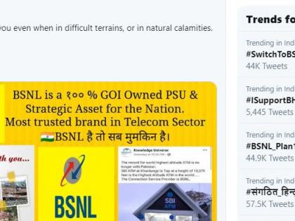 आताच्या क्षणाला #SwitchToBSNL 43.4 हजार आणि #BSNL_Plan1699 या हॅशटॅगवर 44.2 हजार ट्विट करण्यात आले आहेत.