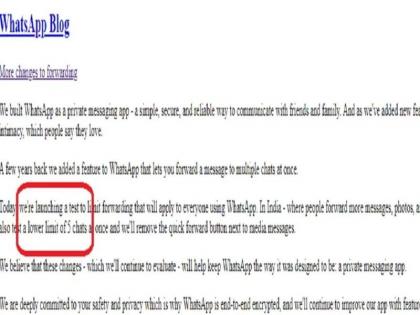 व्हॉट्सअॅपने आपल्या ब्लॉगवरुन यासंदर्भात माहिती दिली. भारतीय युजर्संसाठी लवकरच नवीन फिचर सुरु करत असल्याचे कंपनीने ब्लॉगमध्ये म्हटले आहे. या फिचरमुळे व्हिडिओ किंवा मेसेज ठराविक किंवा ठराविक ग्रुपमध्येच फॉरवर्ड करता येणार आहेत. तर भारतीय युजर्संना केवळ 5 ग्रुपमध्येच मेसेज फॉरवर्ड करता येणार आहे. त्यानंतर तुमच्या व्हॉट्सअॅपवरुन फॉरवर्ड हा पर्याय नाहीसा होणार आहे. मात्र, इतर देशातील व्हॉट्सअॅप युजर्संना 20 ग्रुपमध्ये मेसेज फॉरवर्ड करता येईल. सध्या भारतामध्ये जगातील इतर देशांच्या तुलनेत सर्वाधिक प्रमाणात व्हॉट्सअॅपवरुन मेसेज आणि व्हिडिओ फॉरवर्ड केले जातात. दरम्यान, सरकारने 3 जुलै रोजी व्हॉट्सअॅपला नोटीस बजावली होती. त्यानंतर, पुन्हा एकदा सरकारने नोटीस जारी करत व्हॉट्सअॅपला कारवाई करण्याचा इशारा दिला होता.