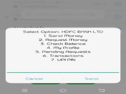 इंटरनेट उपलब्ध असेल तर आपल्याला यूपीआय (UPI) कोडच्या आधारवर व्यवहार करणे आवश्यक आहे. जर इंटरनेट उपलब्ध नसेल तर आपण यूएसएसडी (USSD) आधारवर मोबाईल बँकिंगचा पर्याय निवडू शकता. यासाठी आपल्याला *99# डायल करण्याची आवश्यकता आहे. आपल्या फोनवर एक स्वागत स्क्रीन असेल. यामध्ये पैसे पाठवा (Send Money), पैसे मागवा(Request Money), चेक बॅलन्स (Check Balance), माझे प्रोफाइल (My Profile), प्रलंबित विनंती (Pending Requests, व्यवहार (Transaction) आणि यूपीआय (UPI) पिन हे सात पर्याय दिसतील. या पर्यायांना निवडल्यानंतर मोबाईल नंबर, पेमेंट पत्ता, सेव्हिंग बेनिफिट किंवा आयएफएससी(IFSC) कोड आणि अकाऊंट नंबरच्या सहाय्याने पैसे ट्रान्सफर केले जाऊ शकतात.