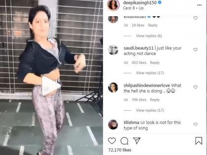‘मी तुझ्या अॅक्टिंगचा फॅन आहे. पण डान्सचा अजिबात नाही,’ असे एका युजरने तिच्या या डान्स व्हिडीओवर कमेंट करताना लिहिले. तर एकाने ‘भयानक डान्सर’ म्हणून तिची खिल्ली उडवली. आहे. हा काय वेडेपणा, हिला लॉकडाऊनमध्ये वेडं लागलंय, अशा कमेंट्स करत अनेकांनी दीपिकाला ट्रोल केले.