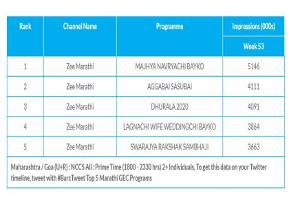 नुकतीच सुरू झालेली लग्नाची वाईफ वेडिंगची बायको ही मालिका चौथ्या क्रमांकावर आहे. ही मालिका गेल्या कित्येक आठवड्यांपासून पहिल्या पाचमध्ये आहे.