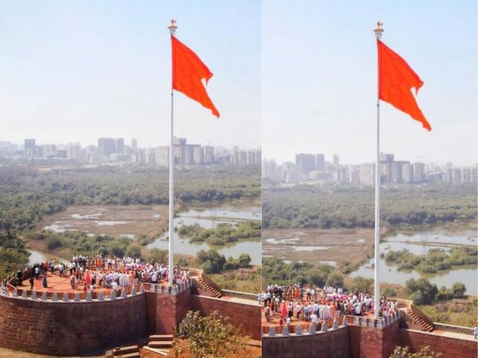 १९ फेब्रुवारी छत्रपती शिवाजी महाराज जयंतीच्या मुहूर्तावर भव्य ध्वज प्रतिष्ठापना सोहळा शिवभक्त, स्थानिक ग्रामस्थ व नागरिकांच्या उपस्थितीत पार पडला. बुरुजावर १०५ फूट उंच ध्वजस्तंभ आहे. तर भगवा ध्वज २० फूट उंच व ३० फूट लांब ध्वज आहे. हा ध्वज २४ तास फडकत राहील. ध्वज रात्रीही दिसावा यासाठी विद्युत व्यवस्था ध्वजाच्या दिशेने करण्यात आली आहे. रिमोटच्या साहाय्याने १०५ फूट उंच ध्वज स्तंभावरून हा ध्वज सरनाईक, ठाणे जिल्हाधिकारी अशोक शिनगारे, पोलिस आयुक्त मधुकर पांडेय, आयुक्त दिलिप ढोले यांच्या हस्ते रिमोटचे बटन दाबून फडकवण्यात आला. ११ पुरोहितांनी विधिवत ध्वजाचे पूजन केले. ध्वज स्तंभावर कायम फडकणारा ध्वज दर १ महिन्याने बदलला जाईल. एकूण ७ मोठे ध्वज उपलब्ध करून ठेवले आहेत.