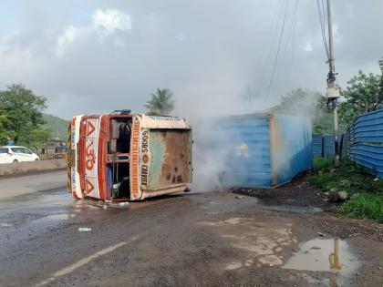 Video: हायड्रोजन पॅराॅक्साइडचा कंटेनर उलटल्यामुळे कोंडी; गायमुख खाडीजवळ अपघात