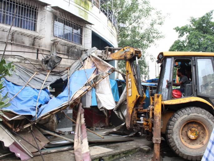 ते पाहून आयुक्तांनी संबंधित अधिकाऱ्यांची कानउघाडणी केल्या नंतर मंगळवारी सहाय्यक आयुक्त योगेश गुणीजन, कनिष्ठ अभियंता विकास शेळके व सुदर्शन काळे, लिपिक महेंद्र गावंड, फेरीवाला पथक कर्मचारी सचिन साळुंखे यांनी जेसीबीच्या सहाय्याने १५ क्रमांक बस थांबा लगत असलेल्या ६ बांबू ताडपत्रीचे शेड तसेच दुकानांच्या बाहेरील १२ शेड तोडून टाकल्या. महाराष्ट्र सुरक्षा बलाचे जवान बंदोबस्तसाठी उपस्थित होते .