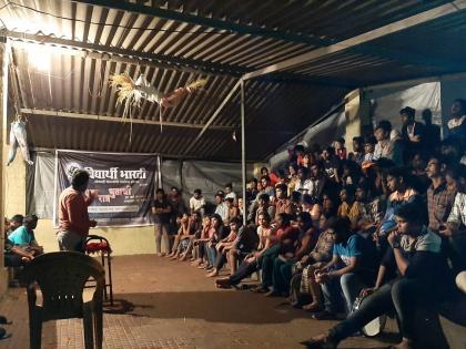 डोंबिवली: दरवर्षी प्रमाणे या ही वर्षी विद्यार्थी भारती संघटनेकडून गटारी अमावस्येच्या रात्री ठीक 10:00 वाजता एक रात्र भुताची ह्या कार्यक्रमाचं आयोजन करण्यात आलं. तरुणांना अंधश्रद्धेविरुद्ध जनजागृती करण्यासाठी आवाहन केल्यानंतर जवळजवळ 150 विद्यार्थ्यांनी बुधवारची रात्र स्मशानात अनोख्या व विविध उपक्रमांनी पार पाडली. तसेच या कार्यक्रमाचे उद्घाटन हे वेगळ्या व इनोव्हेटीव्ह पध्दतीने होत असते .