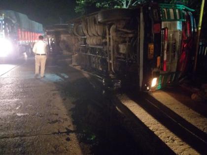 एकाच वेळी दाेन कंटेनर उलटले, भीषण अपघातांमध्ये चालकासह तिघे जखमी