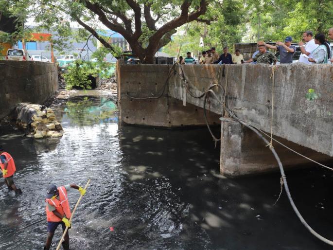 दुसरीकडे आयुक्तांनी प्रथम, कळवा येथील महात्मा फुले नगर येथील नाल्यातील गाळ काढण्याचा कामाचा आढावा घेतला. रस्त्यावर आलेला गाळ लवकर हटवून रस्ता पूर्णपणे वाहतुकीसाठी मोकळा करण्याच्या सूचना यावेळी त्यांनी दिल्या. वस्तीमधील नाल्यात टाकला जाणारा कचरा रोखण्यासाठी या नाल्यांवर जाळ्या बसवाव्यात. त्यात साठणारा कचरा नियमितपणे उचलला जावा. म्हणजे नाल्यात वारंवार पडणारा कचरा साठून पावसाळ्यापूर्वी होणारी कसरत आणि कोट्यवधींचा खर्च कमी होईल. त्यादृष्टीने पावले उचलण्याचे निर्देश त्यांनी दिले.