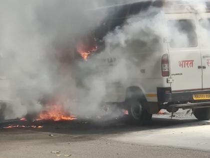 The Burning Van : सुदैवाने यामध्ये कोणतीही जीवितहानी झाली नसली तरी वाहन आणि त्यामधील मशीनचे मोठ्या प्रमाणात नुकसान झाले आहे.
