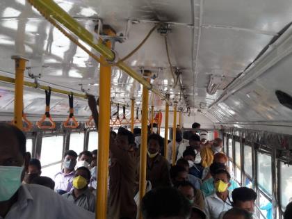 साडेबाराच्या दरम्यान मुंबई महापालिकेतील सफाई कर्मचारी, पोलीस कर्मचारी तसेच इतर अत्यावश्यक सेवेतील कर्मचारी काम संपवून घरी परतत होते. कल्याणला या बसमधील काही कर्मचारी उतरले. उर्वरीत कर्मचारी बदलापूरपर्यंतच्या मार्गावरील होते. या बसमध्ये प्रवासी अक्षरश: कोंबलेले होते. 50 पेक्षा जास्त प्रवासी बसमध्ये होते. त्यात काही उभे होते. एकीकडे गर्दी करू नका, असे सर्वसामान्यांना सांगितले जाते. मात्र कोरोनाच्या नियमांची सरकारी कर्मचाऱ्यांकडून पायमल्ली सुरू असल्याचे चित्र होते. या कर्मचाऱ्यांनाच कोरोनाची लागण होण्याची भीती आहे. बदलापूर, अंबरनाथ, कल्याण, डोंबिवली येथून कर्मचारी दररोज असेच अडचणींचा सामना करत मुंबईत कार्यालयात पोहोचतात आणि गर्दीत घरी येतात.