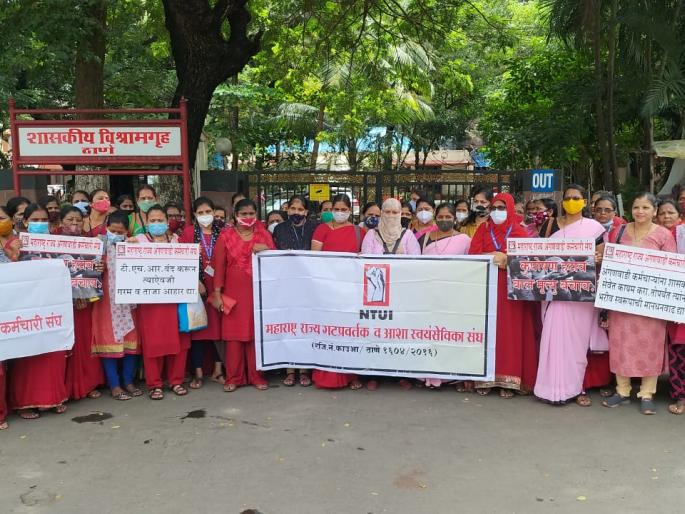जिल्हाधिकारी कार्यालयासमोर जिल्ह्यातील सेविकांचे आम्रपाली खरात, नीलम पाटील, संगिता चाचले आदींच्या नेतृत्वाखाली मागण्यांचे पोस्टर घेऊन अंगणवाडी सेविकांनी निदर्शने केली. यात ठाणे जिल्ह्यातील शहरी व ग्रामीण अंगणवाडी सेविका, आशा, परिचारीका आदींचा समावेश आहे. शासनाच्या विविध योजनांमधील या कर्मचाऱ्यांना प्रशासनाकडून शासकीय कर्मचारी म्हणून ओळखण्यात यावे, या कर्मचाऱ्यांना कोणत्याही सामाजिक सुरक्षांचा लाभ मिळावा. एकात्मिक बाल विकास योजना, राष्ट्रीय आरोग्य अभियान, मनरेगा, सर्व शिक्षा अभियान या योजनांना कायम करावा, अंगणवाडी कर्मचारी, आशा स्वयंसेविका, गट प्रवर्तक इत्यादी कर्मचाऱ्यांना शासकीय कर्मचारीचा दर्जा देण्यात यावा. पेंशन, ग्रेच्युटी, प्रोव्हिडेंट फंड लाभ देण्यात यावे. कायम कर्मचारीचा दर्जा देईपर्यंत २१ हजारांचे मासिक मानधन देण्यात यावे आदी मागण्यांसाठी देशातील या एक कोटी योजनांच्या कर्मचाऱ्यांनी या देशव्यापी लाक्षणिक संपात सहभाग घेतला आहे.
