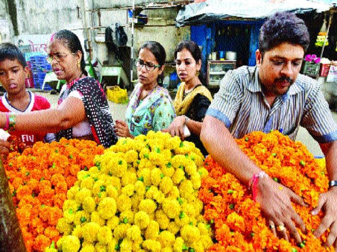 सण - उत्सव, समारंभाचे वातावरण प्रसन्न करण्यासाठी फुलांची आवश्यकता असते. गणेशोत्सव, नवरात्रौत्सव, दिवाळी, दसरा या सण - उत्सवांत फुलांची खरेदी मोठ्या प्रमाणात केली जाते. यानिमित्ताने एरव्हीपेक्षा फुलांचे दरही तिप्पट - चौपट होतात. ते वधारले तरी फुलांची मागणी मात्र कायम असते. दिवाळीच्या तोंडावर विविध प्रकारांची फुले बाजारात दाखल झाली आहेत. परंतु, परतीच्या पावसाने त्यांच्या दर्जावर मात्र पाणी फेरले. गतवर्षीच्या तुलनेत यंदाच्या दिवाळीत फुलांचे दर सर्वसाधारण आहेत. पावसामुळे मालाला दर्जा नाही, फुले माल भिजलेली येत आहेत. आजची फुले ही उद्या लगेच खराब होऊ शकतात. त्यामुळे फार महागड्या दरात ती विकली जात नसल्याचे विक्रेते संजय ठसाळे यांनी लोकमतला सांगितले. बुधवारी नरक चतुर्दशी असल्याने मंगळवारी ठाणेकरांनी फुलांची खरेदी केली. लक्ष्मीपूजनच्या दिवशी दुप्पट गर्दी होईल, असा अंदाज ठसाळे यांनी व्यक्त केला. ठाण्याचा बाजार फुलांनी बहरला असला तरी मालाचा दर्जा खालावला असल्याने विक्रेत्यांमध्ये नाराजी आहे. दिवाळीच्या निमित्ताने मंगळवारी तब्बल ५० हजारांहून किलो अधिक फुलांची आवक झाल्याचे ठसाळे म्हणाले.