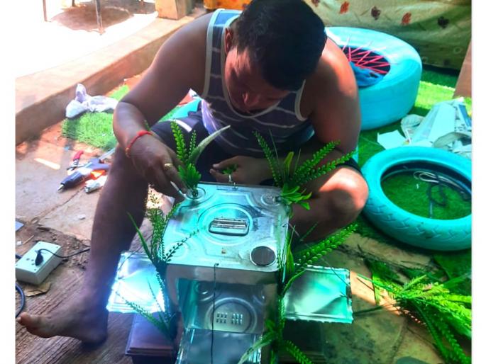 ठाणे : सध्या ऊन वाढत चालले आहे आणि पाऊस यायला देखील वेळ आहे. अशातच आपल्या आजूबाजूच्या पक्ष्यांची तहान भागविण्यासाठी ठाणे पूर्वेतील बारा बांगला येथील वनवसाहतीत राहणाऱ्या वनरक्षकाने घरातील रिकाम्या तेलाच्या पत्र्याच्या डब्याचे भांडे तयार केले आहे. पक्ष्यांना एकावेळी अन्न व पाणी मिळेल अशी सोय या भांड्यात केली आहे. पंकज कुंभार यांनी आपल्या कल्पकतेतून हे भांडे तयार करून झाडांच्या पानाने ते सजविले देखील आहे. आता त्यावर पक्ष्यांचा वावर देखील सुरू झाला आहे. मे महिन्यात प्रचंड उकाडा जाणवत आहे. पक्ष्यांना या काळात पोटातले पाणी कमी होऊन उष्माघाताचा फटका बसतो. अनेकदा ते चक्कर येऊन खाली पडतात आणि जखमीही होतात तर काही मृत्युमुखींही पडतात. त्यामुळे उन्हाळ्यात पक्ष्यांना पाणी ठेवण्याचे आवाहन वेळोवेळी पक्षी मित्र किंवा संघटना करीत असतात. पक्षीप्रेमी कुंभार यांनी आज सकाळी त्यकेवळ दोन तासांत घरात रिकाम्या झालेल्या पत्र्याच्या तेलाच्या डब्यापासून भांडे बनवून पक्ष्यांना खाणे पिण्याची सोय त्यात केली आहे. पक्ष्यांसाठी काहीतरी करावे म्हणून ही कल्पना सुचली. आपण प्रत्येकाने ह्या लहान जीवनासाठी काहीतरी केले पाहिजे. त्यांना ही अन्न, पाणी, निवारा ह्यांची गरज असते. ह्याच विचारातून प्राणी-पक्ष्यांकरिता काहीतरी सतत करत करावेसे वाटते असे कुंभार यांनी सांगितले. काही दिवसांपूर्वी त्यांनी लाकडांपासून चिमण्यांकरिता घरटे बनविले होते. तसेच अन्न आणि पाण्याकरिता भांडी तयार करून त्यावर पक्ष्यांचा मुक्त वावर सुरू होता. त्यातच आता नवीन एक कल्पना त्यांना सुचली. घरातील तेलाचा रिकामा डब्बा घेऊन त्याला बाजूने चार भाग प्लेटसारखे कापून त्यात कडधान्य ठेवले आणि मधील भागात पाणी ठेवण्यासाठी जागा केली. आता पक्ष्यांना एकाच वेळी अन्न आणि पाणी मिळेल. अशीच कल्पना सर्वांनी प्रत्यक्षात आणली, तर पक्ष्यांना वेळीच अन्न व पाणी मिळेल. मुक्या प्राणी पक्षी यांना मदत करणे हे आपले कर्तव्य मानले पाहिजे. जसा माणूस अन्न पाण्यावाचून जिवंत राहू शकत नाही, तसेच प्राणी आणि पक्षी ही जिवंत राहू शकत नाही अशा भावना कुंभार यांनी व्यक्त केल्या. त्यांनी हे भांडे झाडाच्या पानांनी सुंदर सजविले असून घराच्या मागे परसबागेत ठेवले आहे. आता तिथे चिमणी, रॉबिन, सुर्यपक्षी, शिंपी, तांबट, मुनिया, पोपट, मैना आदी पक्षी येत आहेत.