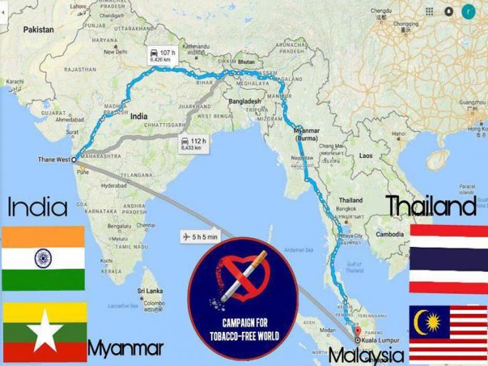 तंबाखूविरोधी प्रचार करण्यासाठी ठाण्यातील चार तरुण करणार ठाणे ते मलेशिया रोड वे प्रवास