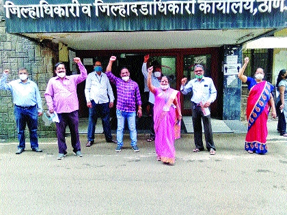 ठाणे : कोरोना या महामारीतसुद्धा जीवाची पर्वा न करता योद्धा म्हणून लढा देणाºया सरकारी व कंत्राटी कर्मचाऱ्यांची, कामगारांची कुचंबणा, आर्थिक गळचेपी केंद्र व राज्य शासनाच्या विविध धोरणांद्वारे होत असल्याचा आरोप करून याविरोधात मंगळवारी ‘राष्ट्रीय विरोध दिवस’ जिल्ह्यातील सर्व शासकीय व निमशासकीय कार्यालयांसह ठाणे जिल्हाधिकारी, तहसीलदार कार्यालयाच्या कर्मचाºयांनी पाळून केंद्र व राज्य शासनाच्या धोरणांचा निषेध केला.