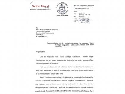 ठाणे : ठाणे महापालिकेच्या तत्कालीन आयुक्त संजीव जयस्वाल यांच्या कार्यकाळात अनेक प्रकरणात अनियमीतता झाली असून त्या विरोधात काँग्रेसचे माजी नगरसेवक संजय घाडीगावकर यांनी थेट मुख्यमंत्र्यांना पत्र पाठवून या प्रकरणाची चौकशी करुन दोषींवर कारवाई करण्याची मागणी केली होती. त्यानंतर आता संजीव जयस्वाल यांनी देखील घाडीगावकर यांनी केलेल्या तक्रारीविरोधात मुख्यमंत्र्यांकडे पाच पानी पत्र पाठवून खुलासा केला आहे. यामध्ये घाडीगावकर यांचे नगरसेवक पद रद्द करण्यात आल्याने आणि त्यांना पुढील ६ वर्षे निवडणुक लढविता येणार नसल्याने, तसेच माझ्या कार्यकाळात हाफ्तेखोरीला लगाम लावल्यानेच त्याचा राग मनात धरूनच घाडीगावकर यांनी तक्रार केल्याचा खुलासा त्यांनी केला आहे. परंतु त्यांनी या पत्रात आणखी काही मुद्यांना हात घातला असल्याने त्यांचा हा लेटर बॉम्ब सध्या चर्चेचा विषय ठरला आहे.