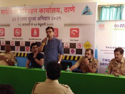 ठाणे प्रादेशिक परिवहन विभागातर्फे ३२ वे राष्ट्रीय रस्ता सुरक्षा अभियान राबवले जात आहे. या उपक्रमांतर्गत गरजू व्यक्तींना सोमवारी हेल्मेट वाटप करण्यात आले. यावेळी प्रमुख पाहुणे म्हणून अभिनेते संतोष जुवेकर आणि मंगेश देसाई उपस्थित होते. भारतीय नागरिक नियमांचा आदर करतो. परंतू, ते नियम लगेच विसरतो. पोलीस अधिकारी दिसल्यावर नियम आठवतात. दुचाकीवर असले की लगेच हेल्मेट आणि कारमध्ये सीटबेल्ट लावले जातात.मात्र त्यांची पाठ फिरली की ये रे माझ्या मागल्या, अशी सत्य परिस्थिती असल्याची खंत मंगेश देसाई यांनी व्यक्त केली.यावेळी ठाणे परिवहन प्रादेशिक कार्यालयातर्फे आरपीजी फाऊंडेशन आणि राईज इंडियाने प्रशिक्षण दिलेल्या टू व्हीलर चालकांना अतिथींच्या हस्ते हेल्मेट देण्यात आले. सुरुवातीला उप प्रादेशिक परिवहन अधिकारी विश्वभर शिंदे यांनी कार्यक्रमाचे प्रास्ताविक केले. यावेळी उप प्रादेशिक परिवहन अधिकारी जयंत पाटील, रोटरी क्लब ऑफ ठाणे सनराईजचे अध्यक्ष अतुल भागवत, माजी अध्यक्ष सचिन देशपांडे आदी मान्यवर उपस्थित होते. कार्यक्रमाचे सूत्रसंचालन लेखाधिकारी अपर्णा पाटणे यांनी केले.