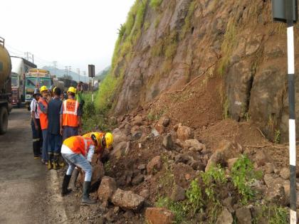 मुंब्रा बायपासवर दरड कोसळल्यानं वाहतुकीची कोंडी, प्रवासी हैराण