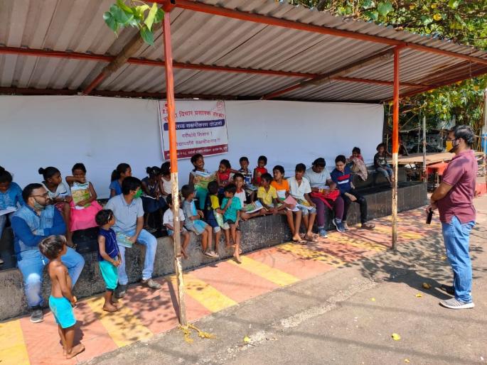 ठाणे : पाटी नी पेन्सिल घेऊ द्या की रं! मला बी शाळेला येऊ द्या की रं! असं म्हणत समता विचार प्रसारक संस्थेने आज ठाण्यात शिक्षक दिनी, तीन ठिकाणी प्रतीकात्मक पद्धतीने प्रत्यक्ष पुस्तके हातात धरून, मोबाईल शिवाय शाळा भरवली! हरी ओम नगर जवळील डम्पिंग ग्राउंड, साई साफल्य सोसायटी, कोपरी आणि खारटण रोड या ठिकाणी भरवलेल्या या शाळेत एकूण सुमारे ६० विद्यार्थी सामील झाले. डॉ संजय मंगला गोपाळ, जगदीश खैरालिया, सीमा श्रीवास्तव आदींनी या शाळेत शिकवले. मुलांनी धडे वाचले. महात्मा जोतिबा फुल्यांचे अखंड गायन करण्यात आले. अजय भोसले, प्रवीण खैरालिया आणि सुनील दिवेकर यांनी या शाळांचे आयोजन केले होते. घरात मोबाईल नाही. मोबाईल असेल तर तो बाबांकडे कामावर. कधी वीज नाही तर कधी नेट नाही. अशा परिस्थितीत ऑनलाईन शाळा सुरु असली तरी आम्ही ऑफलाईनच आहोत,अशी खंत मुलांनी यावेळी व्यक्त केली. आमची नियमित शाळा सुरु करा, अशी एकमुखी मागणी विद्यार्थ्यांनी सर्वत्र केली. या उपक्रमात संतोष चौधरी तसेच रवि आयझॅक, प्रतिक गावडे या महाविद्यालयीन विद्यार्थ्यांनीही सहभाग घेतला.
