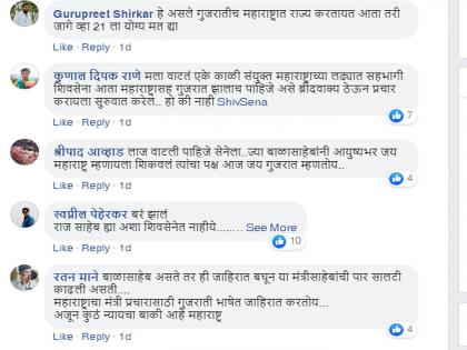 निवडणुकीच्या काळात पुन्हा एकदा शिवसेनेने गुजराती मतांना जवळ करण्यासाठी अशाप्रकारे जाहिरात केल्याचं बोललं जात आहे. आदित्य ठाकरे यांच्या वरळीतील गुजराती बॅनरमुळे अनेकांनी नाराजी व्यक्त केली होती. त्यानंतर एकनाथ शिंदे यांच्या जाहिरातीमुळे मराठी भाषिकांमध्ये संतप्त भावना निर्माण झाली आहे. त्यातच मनसे अध्यक्ष राज ठाकरेंनी मराठी भाषेचा मुद्दा पुढे करुन मेट्रोच्या निमित्ताने मराठी अस्तित्व संपविण्याचा घाट घातला जातोय असा आरोपही मुंबईतील भाषणात केला होता.