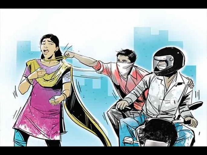 शहरातील हिललाईन पोलीस ठाण्याच्या हद्दीतील द्वारलीगाव बस स्टॉपजवळ रविवारी रात्री सव्वा नऊ वाजता मुलाची वाट पाहत रिक्षात बसलेल्या बहिणी सोबत रेखा बाळाराम ठोंबरे या बोलत उभ्या होत्या. त्यावेळी स्पोर्ट्स मोटरसायकलवरून धूम स्टाईलने आलेल्या दोन इसमानी रेखा ठोंबरे यांच्या गळ्यातील मंगळसूत्र व सोन्याची चेन खेचुन पळ काढला. मंगळसूत्र व चेन खेचुन पळ काढत्या वेळी रेखा ठाकूर यांच्या गळ्याला जखम झाली असून मंगळसूत्र व चेनची किंमत ३ लाख ३० हजार होती. या चोरी प्रकरणी हिललाईन पोलीस ठाण्यात दोन इसमा विरोधात गुन्हा दाखल झाला असून पोलीस अधिक तपास करीत आहेत.