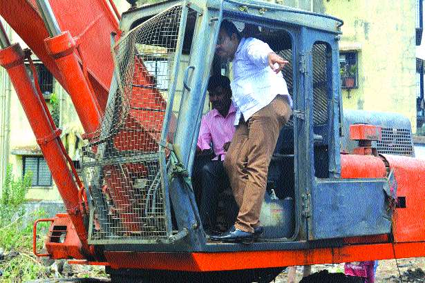 गणपत गायकवाड यांनी तेथे पोहोचून चक्क नालेसफाई करणाऱ्या जेसीबी चालकाच्या केबीनचा ताबा घेत त्याच्याकडून नाल्यातील गाळ काढून घेतला.