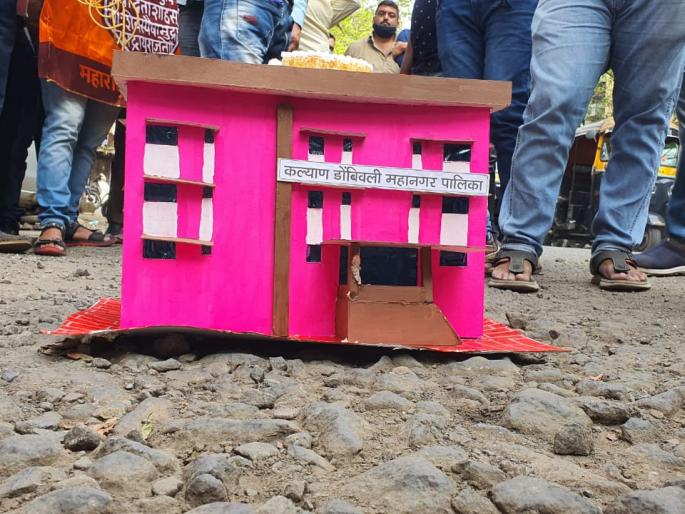 KDMC च्या ३७ व्या वर्धापनदिनी मनसेचं अनोखं आंदोलन; खड्ड्यांच्या निषेधार्थ कापला केक